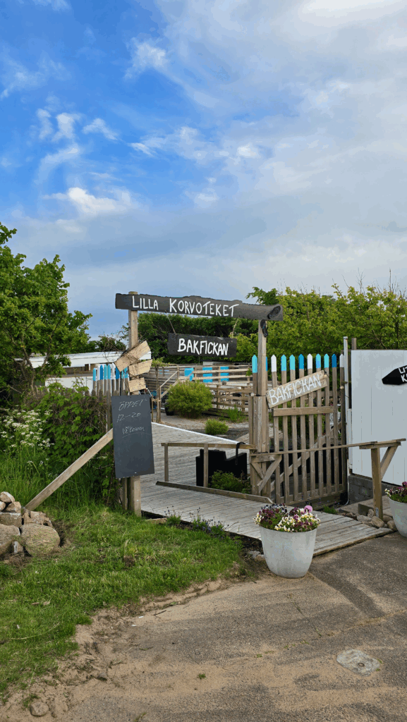 Dagen efter fick vi en tidig start och lagom till elvakaffet rullade vi in i mysiga Vejbystrand. Det är viktigt med fika och vi har tagit fasta på att alltid ha hembakt med oss. I de få fall vi får slut på förrådet så finns det alltid något trevligt fik att tillgå. Den här gången blev det lite Geijers tuppkaka samt nybryggt kaffe.