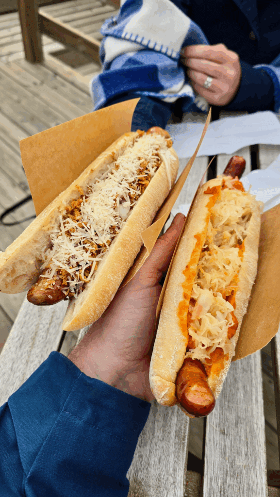 När vi till sist kom tillbaka till husbilen upptäckte vi till vår stora förtjusning att det fanns ett ”korvotek” precis bredvid ställplatsen. Vilken livräddare! Mätta och glada konstaterade vi att med en sådan start på turen så kommer det garanterat bli en lyckad fortsättning.