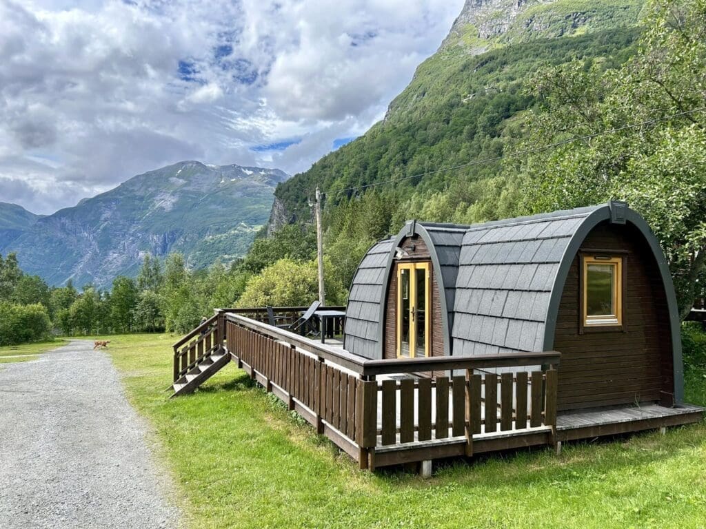 There is also a campsite down in the village but it's pretty boring and apart from the fabulous views it's mostly a car park for motorhomes. At Vinje you get both a cosy place and beautiful views. It will be a short walk down to Geiranger, but it is a nice walk along a waterfall that stretches all the way down to the fjord. The waterfall also runs through the campsite, so if you want, you can stay just a few metres from the rushing water. By the way, the waterfall can be heard wherever you stand on Vinje, nothing for those who easily get the urge to pee. 🙂