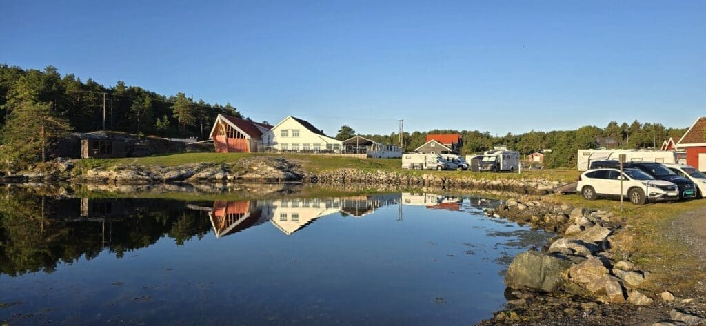If you want to stay in a marina, this is the place for you. You can stay right next to the jetty and watch the boats and listen to the seabirds in peace and quiet. The pitch can be booked at campino.no and you can choose the pitch you want. At the jetty there are three or four places and on the lawn behind the boathouses there are many more. You don't get quite the same view here, but on the other hand you don't get the wind from the sea. All pitches have electricity.