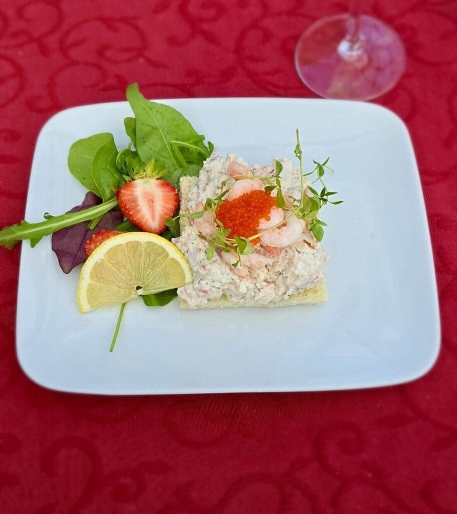What about the food, how was it? Yes, thank you, it was very good! They have a fairly traditional menu with classics like Toast Skagen and beef fillet with potato gratin but everything was very well cooked and delicious. As far as possible, they also use locally produced ingredients. For example, the meat comes from a nearby farm and the herbs from their own orangery. I guess they also have a strawberry patch somewhere behind the house as all the dishes contained strawberries.
