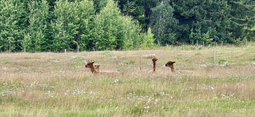 The farm hotel is in a rural location with meadows and woods all around. Right next to the car park is the alpaca farm, where you can see the alpacas grazing and enjoying the green grass. If you want to see more of the cute animals, you can book a guided tour or a coffee break. This includes treats for you and the alpacas, cows and koi fish.