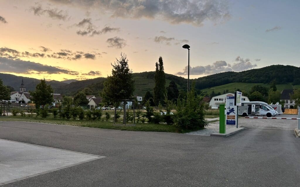The car park in the wine village of Andlau is a typical Aire, of which there are many in France. They are often a bit boring but functional and adjacent to towns and villages. Andlau Aire has around 20 pitches with drainage, water and electricity, but nothing else.